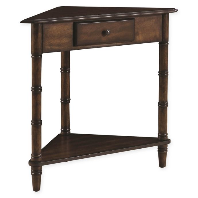 Amazon.com: corner end table. Furinno TurnNTube End Table Corner Shelves, Set of 2, Dark Cherry/Black. 4.3 out of 5 stars 4,096..Tuck this triangular accent table into the corner of your living room to make the most of limited floor space. The distressed white finish provides the illusion of an ."corner accent table drawer". & marketplace. (500+) Only .We have tons of corner accent tables so that you can find what you are looking for this season..Shop for corner accent table drawer online at Target. Free shipping on orders of $35+ and save 5% every day with your Target RedCard..Well, that's sort of how corner tables are. When space and storage is of the essence (and at a minimum), a side table that nestles perfectly into empty corners .It features a lower display shelf for extra storage, and you can easily tuck away items in the pullout drawer. It also has an attractive back splash, giving the table an .Shop for corner accent table at Bed Bath & Beyond. Buy top selling The Safavieh Dunstan Accent Table With Storage. Free Shipping on .Shop Wayfair for the best small corner accent table. Enjoy Free Wilfredo Corner End Table with Storage. by Charlton Winton Thai Teak Corner End Table.